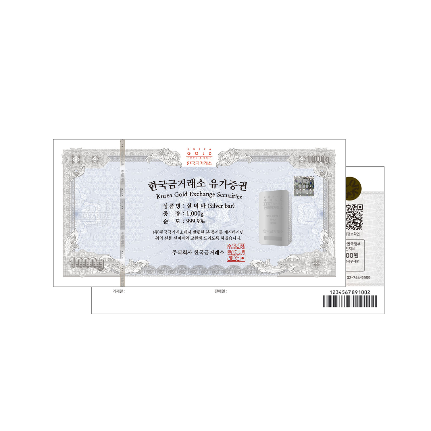 한국금거래소 유가증권 실버바 1000g